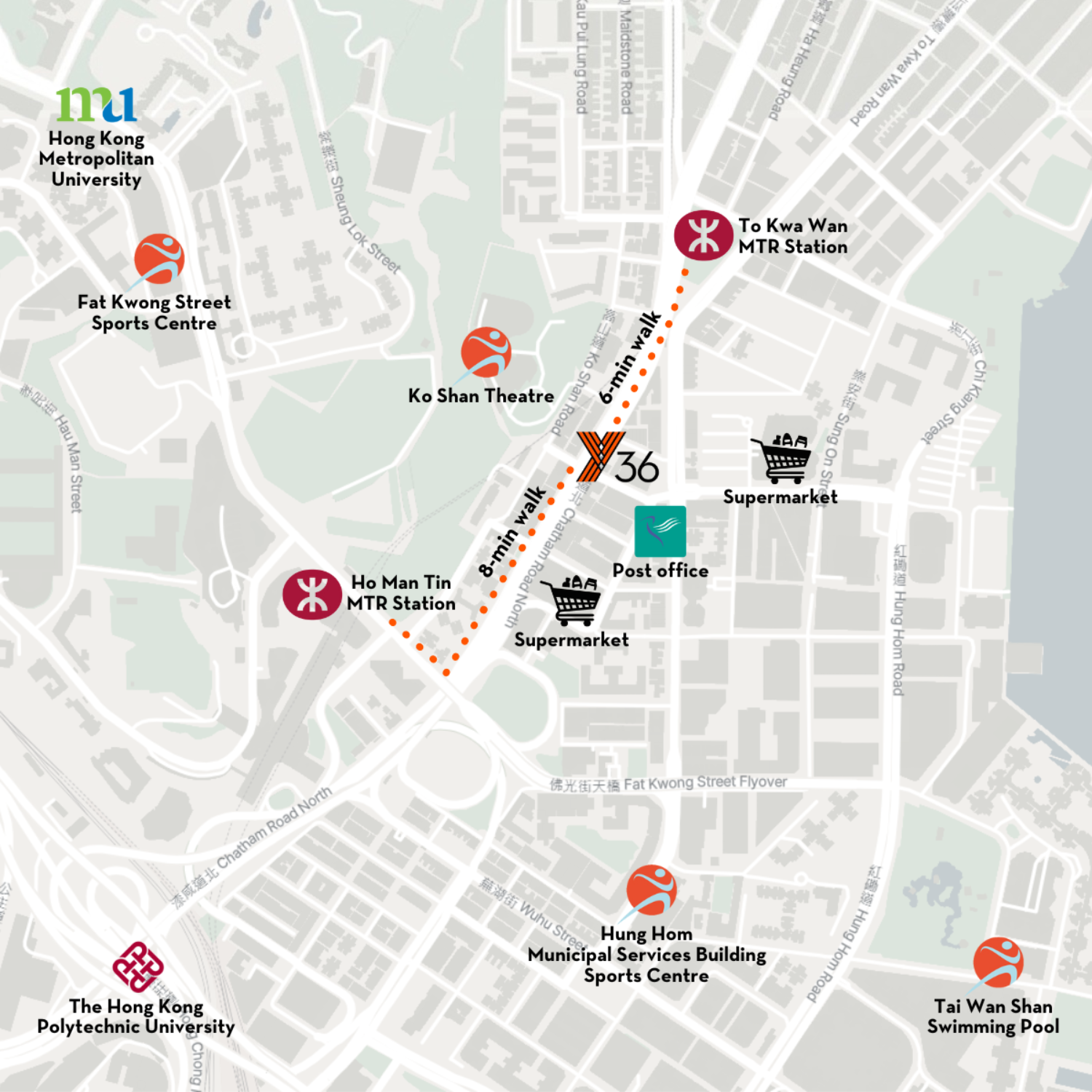 As a brand-new student housing developed by Ydotx, Y36 aims to create an ideal living space for young people with dreams and the courage to pursue them. Located near the Ho Man Tin and To Kwa Wan MTR stations, and provides convenient transportation and are in close proximity to several renowned universities, including The Hong Kong Polytechnic University, Hong Kong Metropolitan University, City University of Hong Kong, and Hong Kong Baptist University. This allows you to easily connect your campus life with your career development.