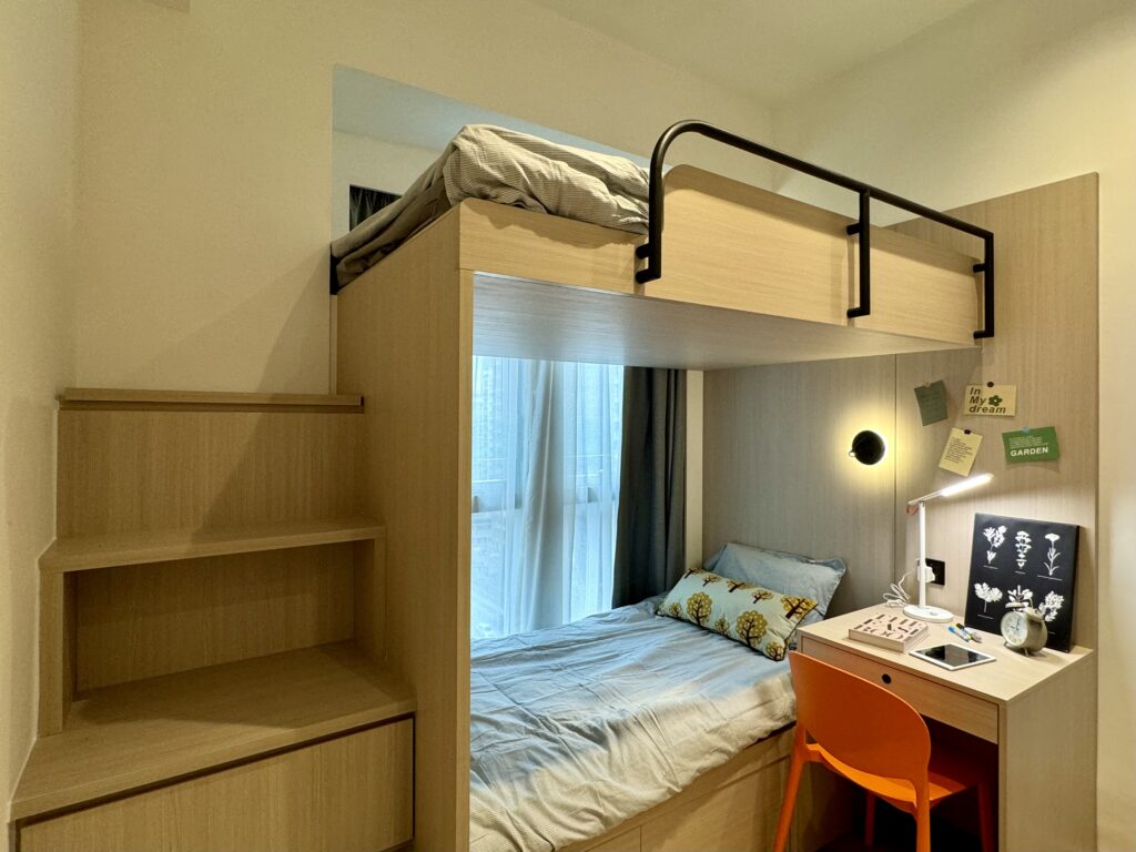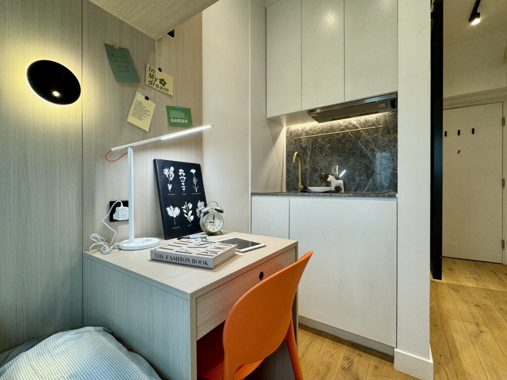 With high privacy of 82 beds in a 3-unit-per-floor design, Y36 offers twin bed and single room which is equipped with a 24-hour security monitoring system, providing you with a worry-free and secure living experience.! Each unit is furnished with a private kitchen and a private bathroom , as well as WiFi to meet your daily needs.