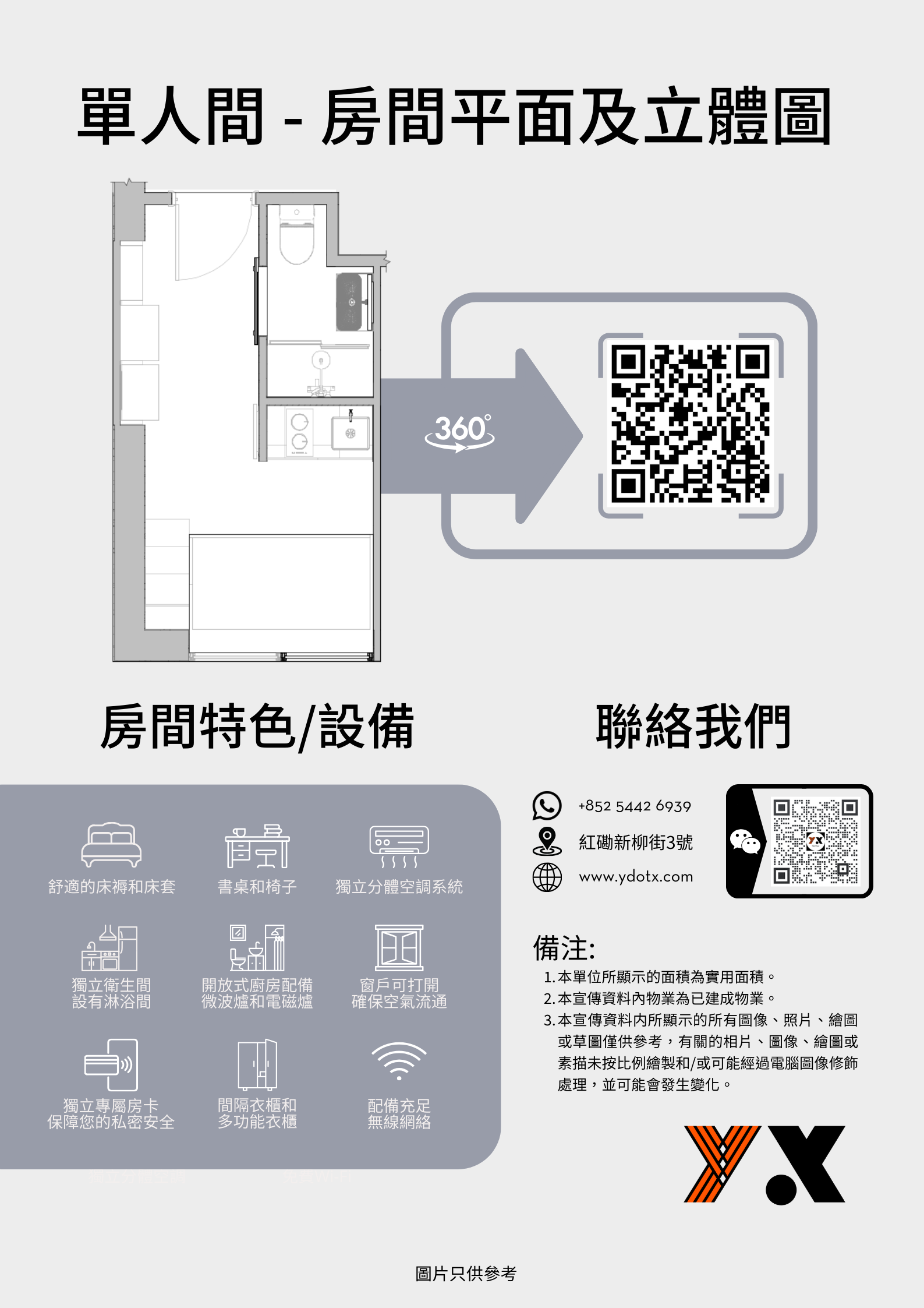 共提供82個床位,一梯三戶,設有24小時保安系統。目標是為大學生及新畢業生提供安全及高私隱度住宿服務。公寓擁有單人間及雙人間,房間內配備廚房、乾濕分離的衛生間及高速WiFi。